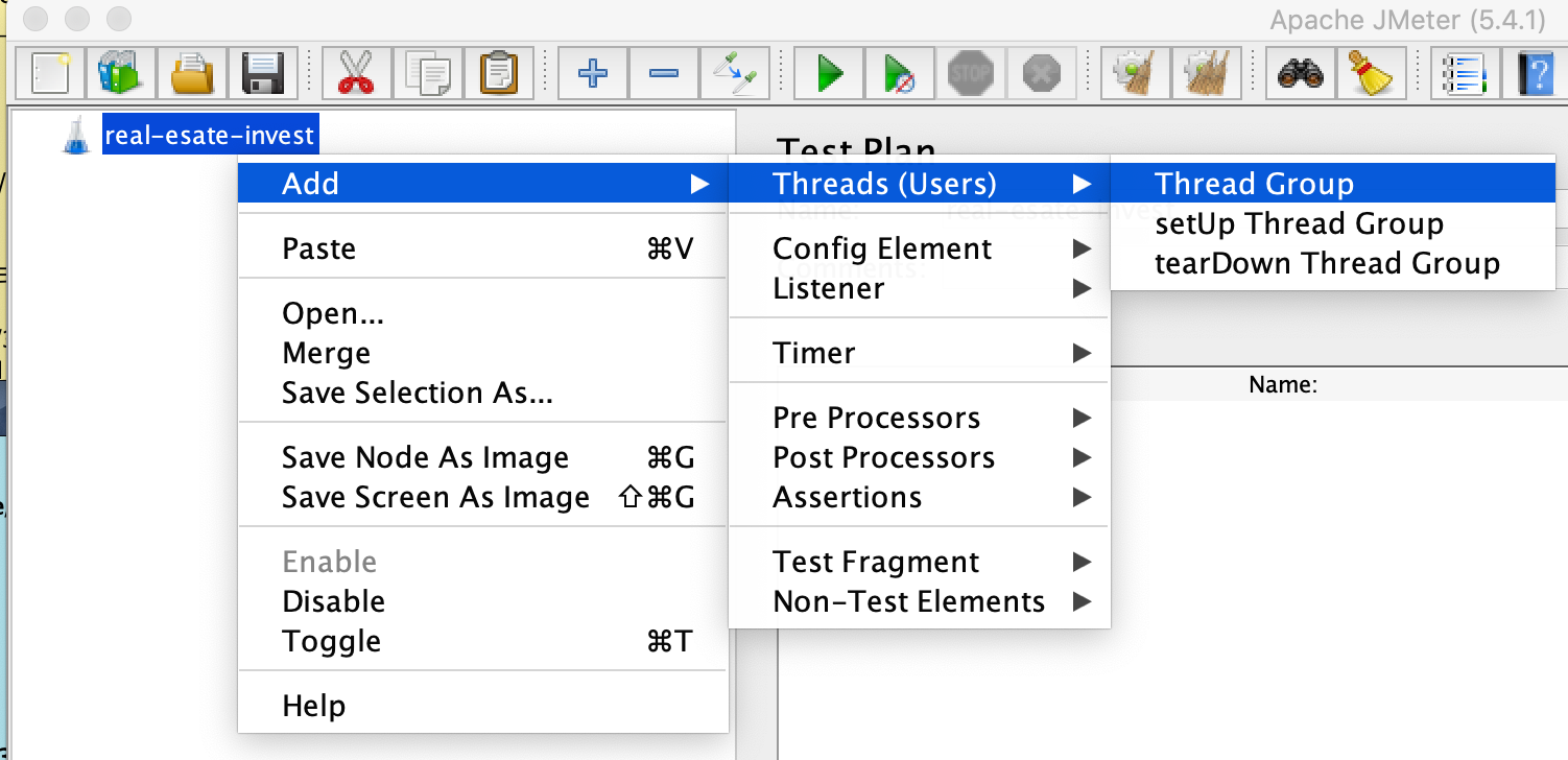 Test Plan을 우클릭하고, Add -> Threads -> Thread Group을 클릭하여 Thread Group을 생성한다.