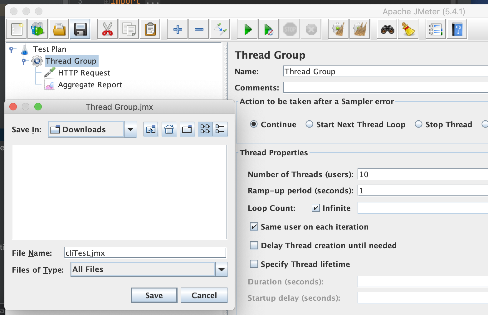 다음과 같이 Thread Group에 Loop Cout를 infinite로 설정하고,
