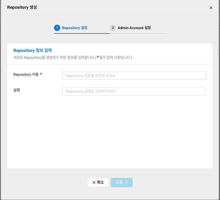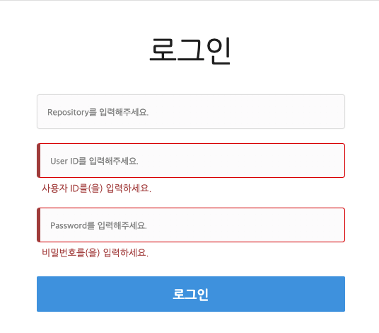 Repository를 만드는 과정에서 생성한 Repository 이름, 관리자 ID와 Password를 입력하여 로그인한다.