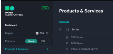 네이버 클라우드 플랫폼 콘솔로 들어가서 Product&Services 탭을 클릭하고,