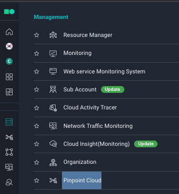 하단으로 내려가면 Management - Pinpoint Cloud를 확인할 수 있다. 이것을 클릭한다.