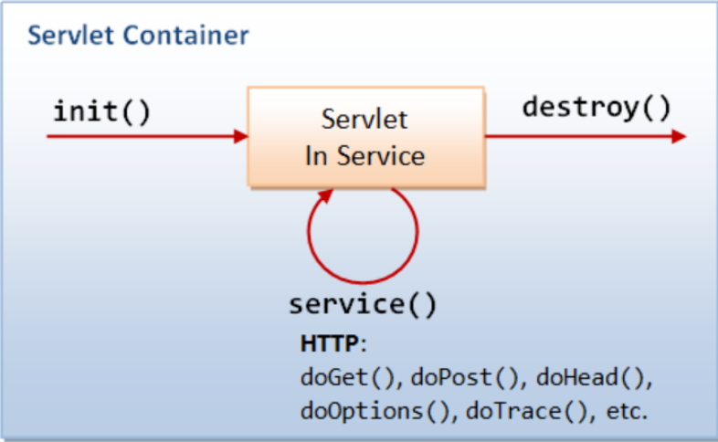 예를 들어 Get 요청인 경우 service() 메서드는 요청 매개변수와 함께 doGet() 메서드를 호출하여 요청을 doGet() 메서드로 전달한다.