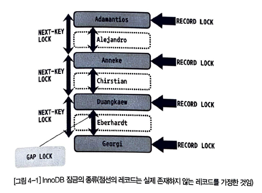 - 종류: InnoDB의 레코드 기반 잠금