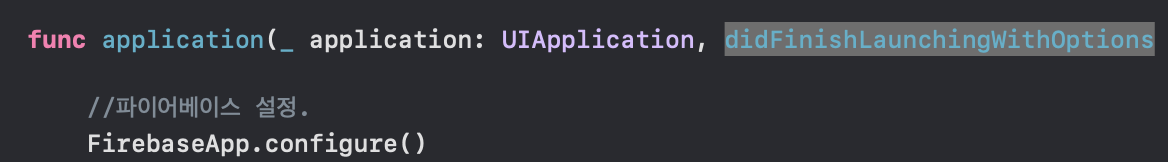 5. 앱의 application:didFinishLaunchingWithOption: 메서드에 FirebaseApp 공유 인스턴스 추가