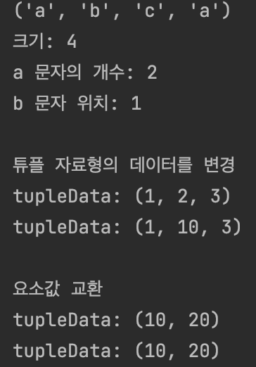tupleData = tuple(listData) # 리스트를 튜플로 형 변환