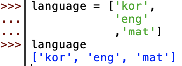 | list | · 리스트 자료형으로 순서를 가진다. · 혼합 형태의 자료를 포함할 수 있다. |