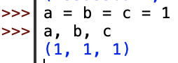 · 여러 변수에 하나의 값을 한 번에 할당할 수 있다.