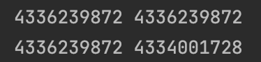 a, b는 여러 개의 값을 갖는 리스트형 변수로 선언되었다. 두 변수는 같은 값을 갖지만, 파이썬의 특성으로 다른 객체로 생성된다.