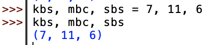 a, b = tupleData # a, b 두 변수에 tupleDate를 치환
