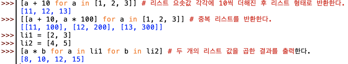 - for 문에 복수 개의 변수를 사용할 수 있다.