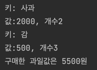 my = {'사과':2, '감':3} # 내가 구매한 과일 자료