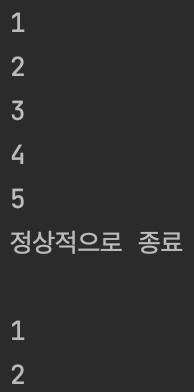 - datas 변수를 저장된 요소를 출력한다. 이때, continue에 3이 출력에서 제외되고, 요소가 4인 경우 break에 의해 for 반복문이 강제 종료된다.