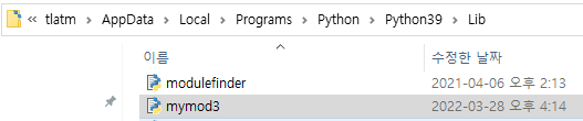 파이썬 설치 파일이 있는 python3 폴더에 mymod3.py 파일을 작성한다.