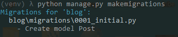 blog/migrations 폴더에 0001_initial.py 파일이 생성된다.