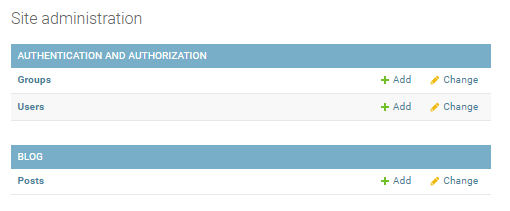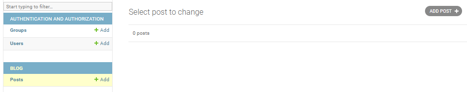 2. 서버를 실행하고, 관리자 페이지를 연다. 관리자페이지에 [BLOG]섹션과 [Posts] 메뉴가 생긴걸 확인할 수 있다.