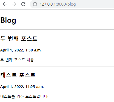 포스트 목록 페이지를 갱신하면, 다음과 같이 변경된 것을 확인할 수 있다.