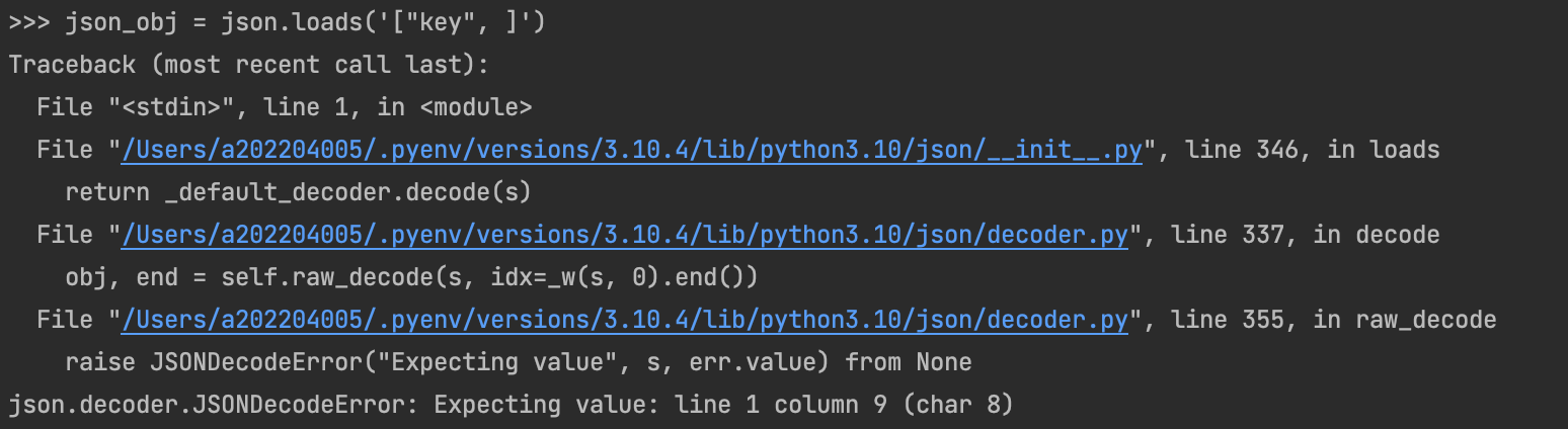 - json.loads()는 문자열을 받아 json 객체를 반환한다.
