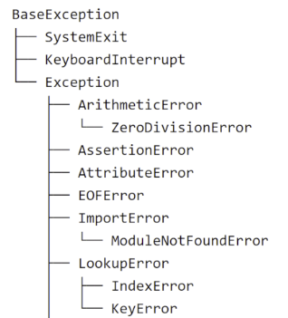 · 모든 예외는 BaseException 클래스를 상속한다.