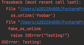 - 다음 예시에서 os.unlink() 함수를 가짜 함수로 바꾸어보자.