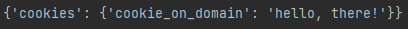 cookies.set('cookie_on_domain', 'hello, there!', domain='httpbin.org')